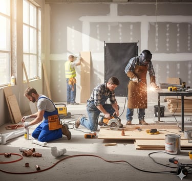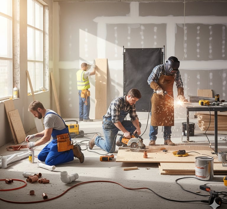 Servicios de gasfitería, carpintería, soldadura, pintura, ebanistería, cerrajería, vidriería además de valorizaciones y levantamientos trabajos topográficos